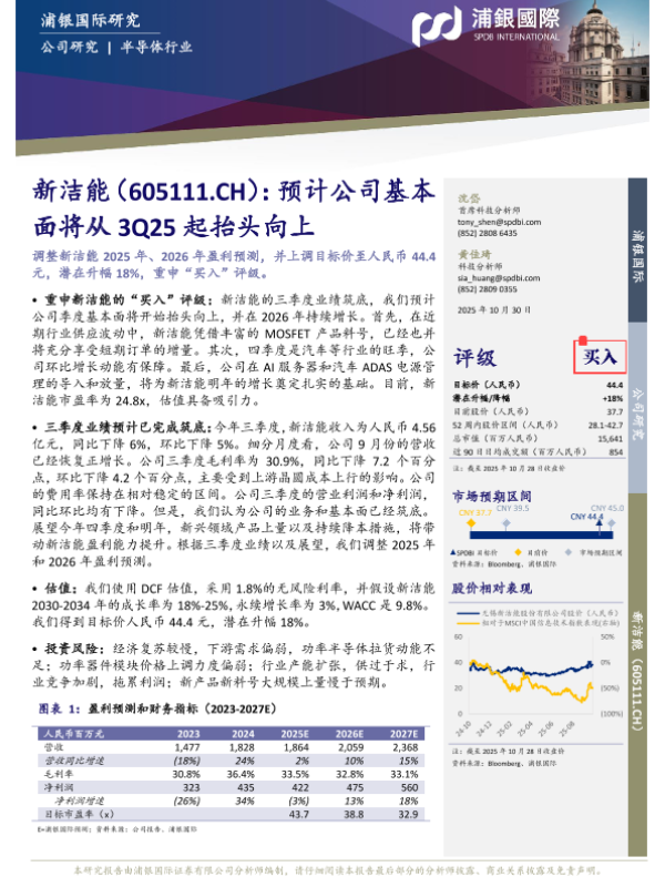 【浦银国际】【202510】新洁能(605111.CH):预计公司基本面将从 3Q25起抬头向上-9页 公司研究
