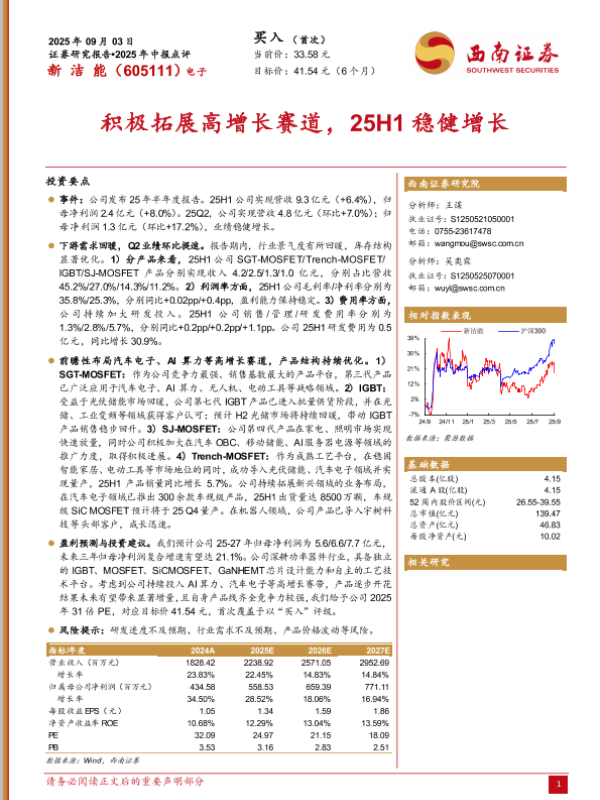 【西南证券】【202509】新洁能(605111)2025年中报点评:积极拓展高增长赛道,25H1稳健增长-10页 证券期货研究报告
