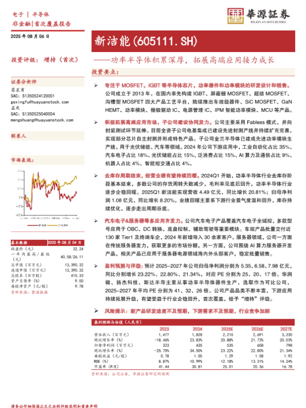 【华源证券】【202508】新洁能(605111)功率半导体积累深厚,拓展高端应用接力成长-15页 证券期货研究报告