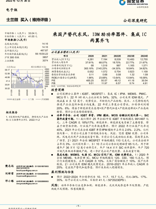 【国金证券】【20221230】深度报告-20221230-国金证券-士兰微-600460.SH-乘国产替代东风_IDM助功率器件_集成IC两翼齐飞-37页 行业研究