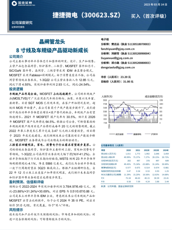 【国金证券】【20230314】国金证券-捷捷微电-300623.SZ-晶闸管龙头 8寸线及车规级产品驱动新成长-24页 行业研究