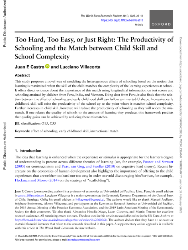 【The World Bank】【2025】Too Hard, Too Easy, or Just Right The Productivity of Schooling and the Match between Child Skill and School Complexity-16页 学术论文