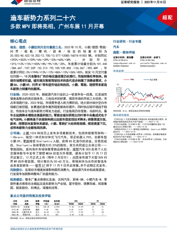 【国信证券】【20231110】造车新势力系列二十六:多款MPV即将亮相,广州车展11月开幕-34页 行业研究