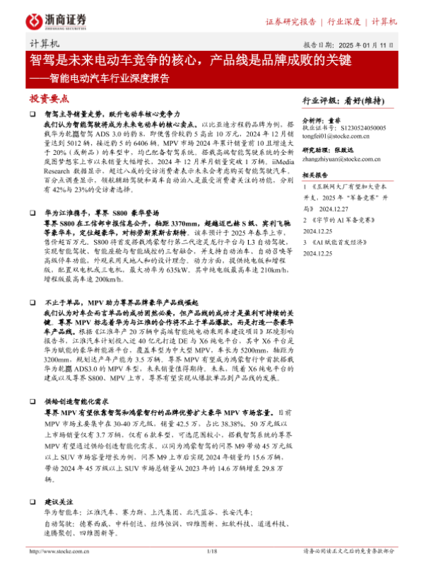 【浙商证券】【20250111】智驾是未来电动车竞争的核心,产品线是品牌成败的关键-18页 行业研究