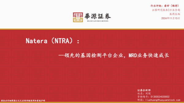 【华源证券】【20241115】Natera(NTRA):领先的基因检测平台企业,MRD业务快速成长-53页 行业研究