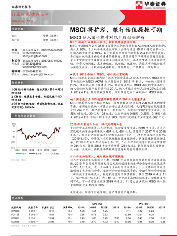 【华泰证券】【20190412】MSCI纳入因子提升对银行股影响解析-4页 行业研究