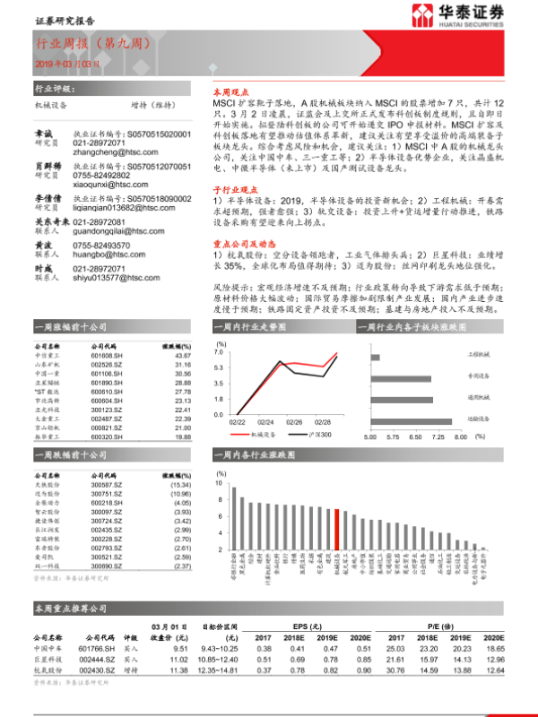 【华泰证券】【20190303】20190303-华泰证券-机械设备行业周报(第九周)-13页 行业研究