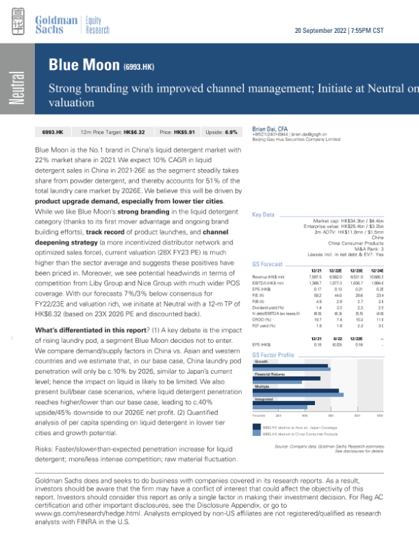 【Goldman Sachs】【20220920】Strong branding with improved channel management; Initiate at Neutral on valuation-28页 行业研究