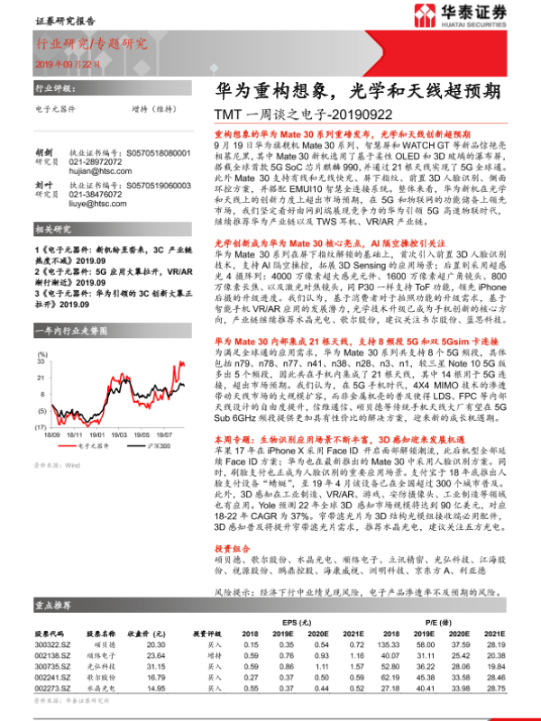 【华泰证券】【20190922】TMT一周谈之电子:华为重构想象,光学和天线超预期-14页 行业研究