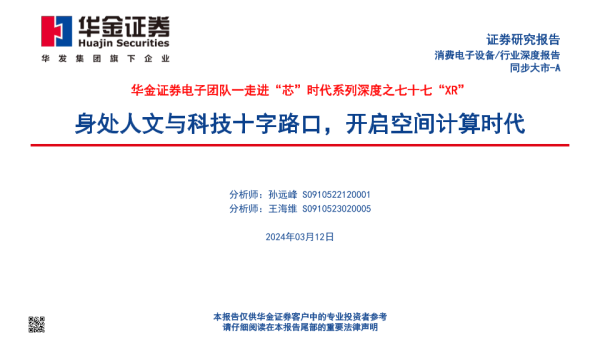 【华金证券】【20240312】走进“芯”时代系列深度之七十七“XR”-身处人文与科技十字路口-开启空间计算时代-160页 证券期货研究报告
