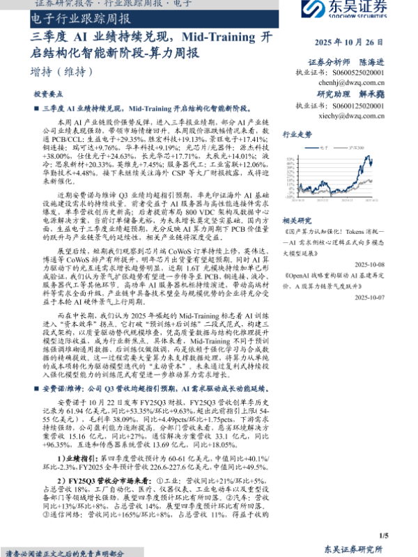 【东吴证券】【202510】电子行业跟踪周报·行业跟踪周报·电子-5页 证券期货研究报告
