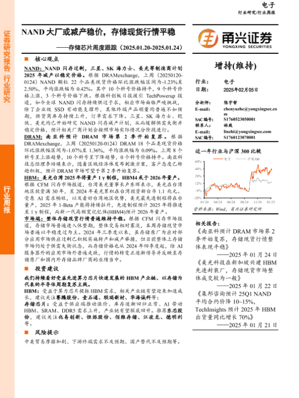 【甬兴证券】【20250205】存储芯片行业周度跟踪:NAND大厂或减产稳价,存储现货行情平稳-10页 行业研究