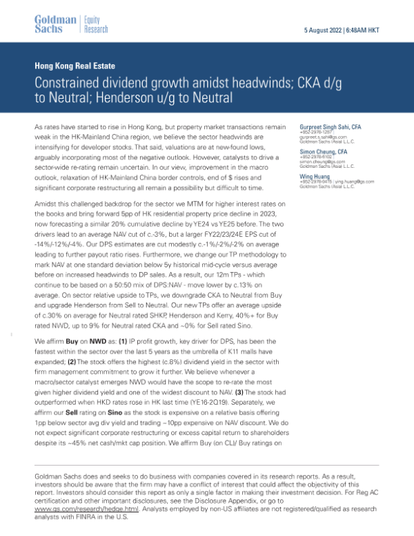 【Goldman Sachs】【20220805】end growth amidst headwinds; CKA d_g to Neutral; Henderson u_g to Neutral-26页 行业研究