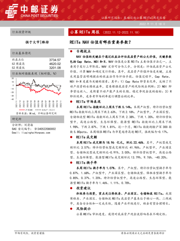 【中邮证券】【20221118】基础设施公募REITs周报:REITs NAV估值有哪些重要参数?-18页 行业研究