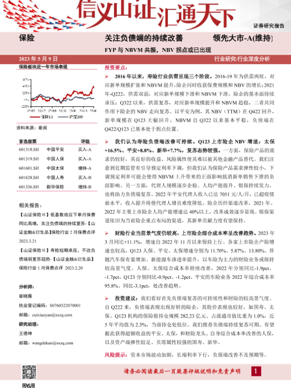 【山西证券】【20230509】保险行业:关注负债端的持续改善,FYP与NBVM共振,NBV拐点或已出现-23页 行业研究