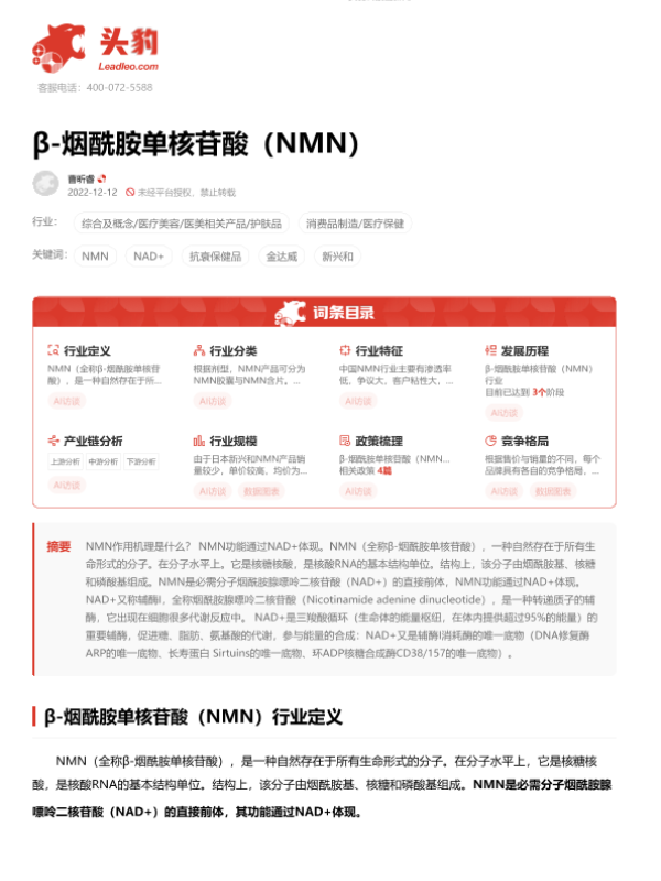 【头豹研究院】【20230612】β-烟酰胺单核苷酸(NMN)-13页 行业研究