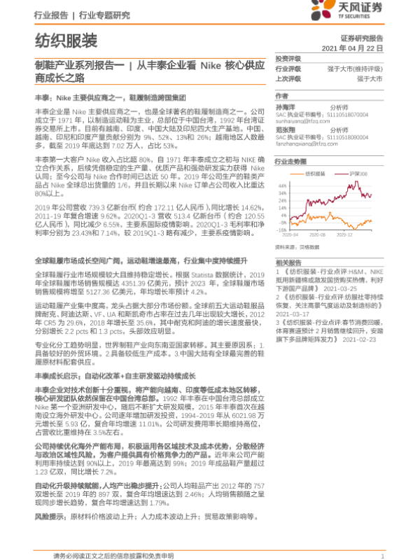 【天风证券】【20210422】纺织服装:制鞋产业系列报告一 从丰泰企业看Nike核心供应商成长之路-18页 行业研究