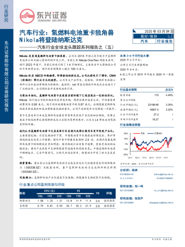 【东兴证券】【20200309】汽车行业:氢燃料电池重卡独角兽Nikola将登陆纳斯达克-9页 行业研究