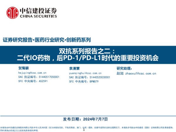 【中信建投证券】【20240707】医药行业双抗系列报告之二:二代IO药物,后PD-1/PD-L1时代的重要投资机会-60页 行业研究