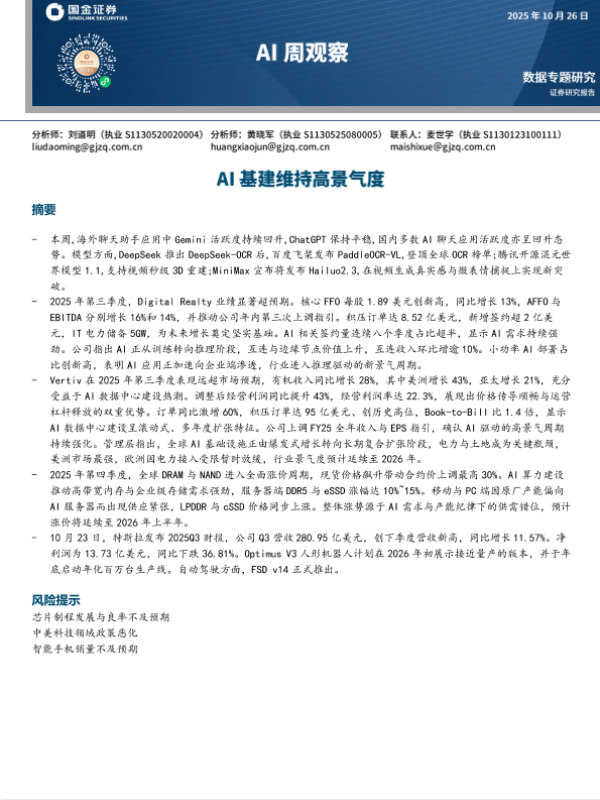 【国金证券】【202510】AI周观察:AI基建维持高景气度-9页 证券期货研究报告