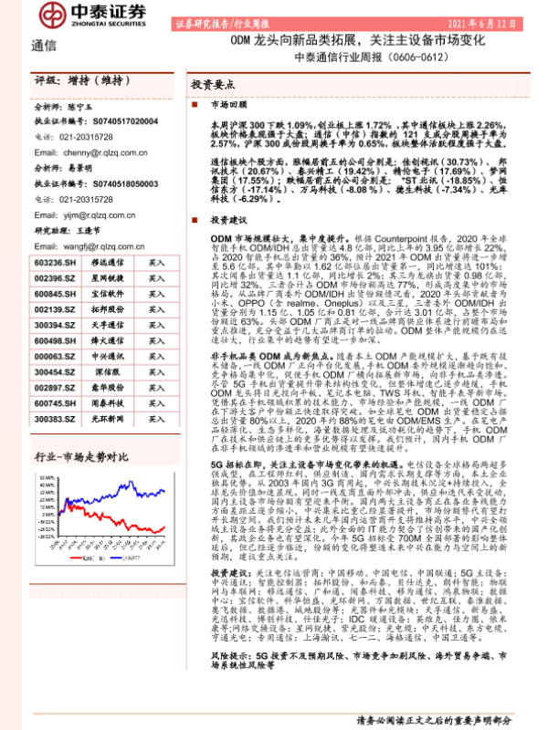 【中泰证券】【20210612】中泰通信行业周报:ODM龙头向新品类拓展,关注主设备市场变化-16页 行业研究