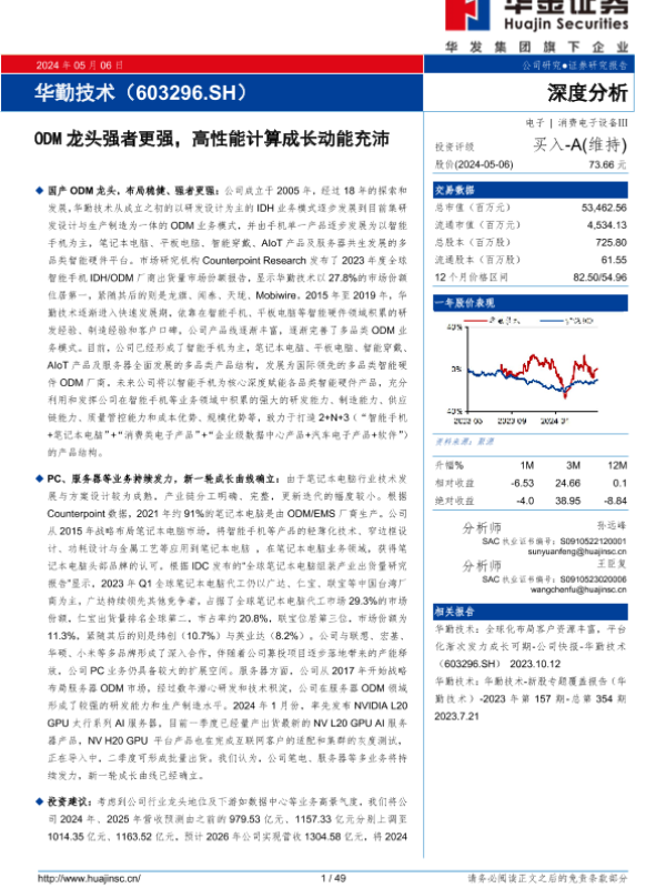 【华金证券】【20240506】华勤技术(603296)ODM龙头强者更强,高性能计算成长动能充沛-49页 行业研究