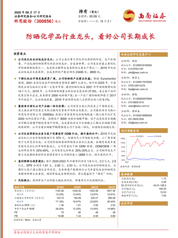 【西南证券】【20200917】20200917-西南证券-科思股份-300856.SZ-防晒化学品行业龙头,看好公司长期成长-35页 行业研究