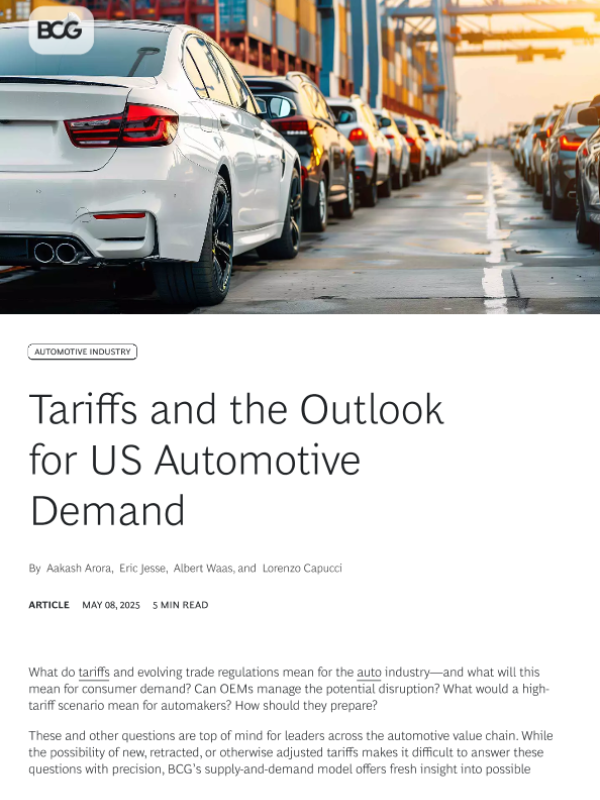 【Boston Consulting Group】【20250508】Tariffs and the Outlook for US Automotive Demand-7页 行业研究