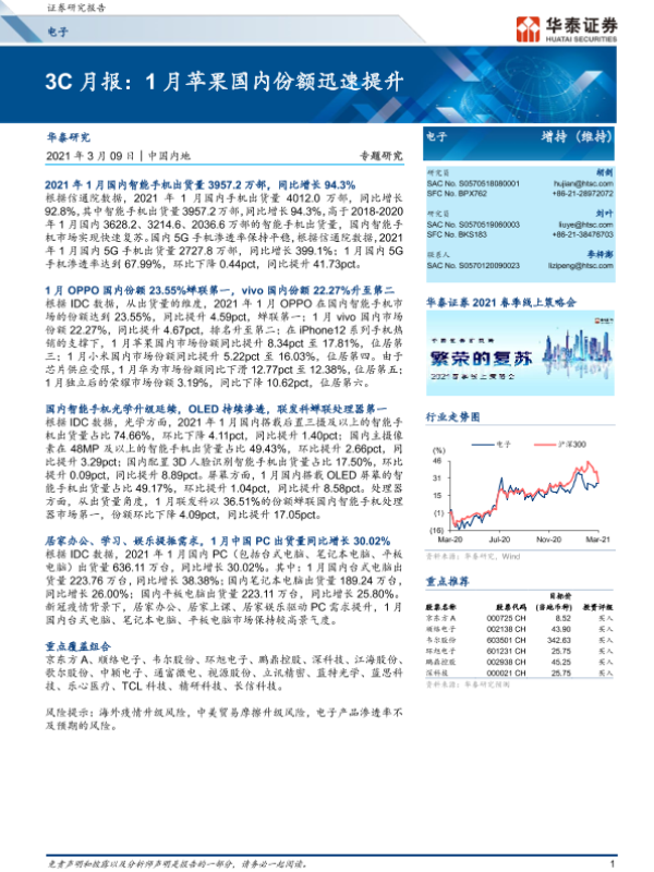 【华泰证券】【20210309】电子3C月报:1月苹果国内份额迅速提升-16页 行业研究