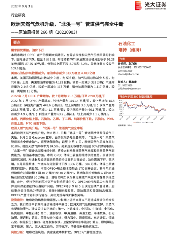 【光大证券】【20220625】原油需求担忧持续,欧洲天然气供给短缺风险上升-11页 行业研究