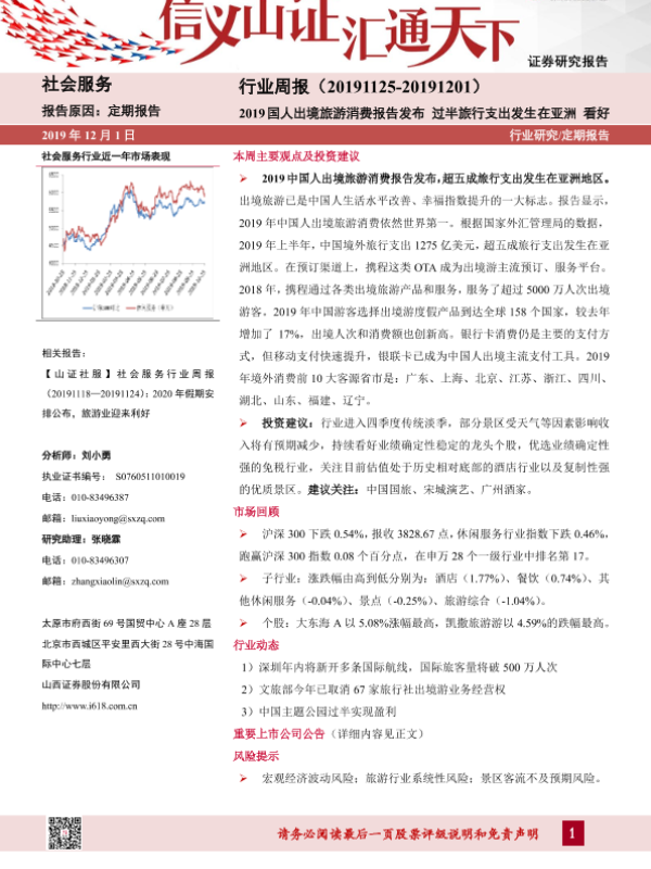 【山西证券】【20191201】2019国人出境旅游消费报告发布 过半旅行支出发生在亚洲-9页 行业研究