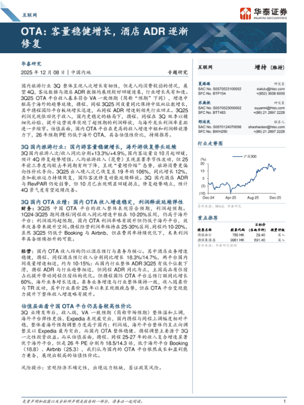 【华泰证券】【202512】OTA:客量稳健增长,酒店ADR逐渐修复-10页 证券期货研究报告
