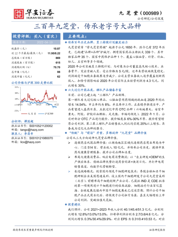 【华安证券】【20220419】三百年九芝堂,传承老字号大品种-21页 行业研究