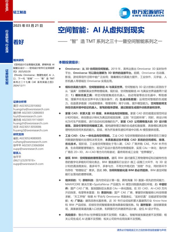 【申万宏源】【20241211】计算机行业“智”造TMT系列之二十七暨CAE系列深度之四:Nvidia+Omniverse,物理生成式AI入口,下一代“软核”-21页 行业研究