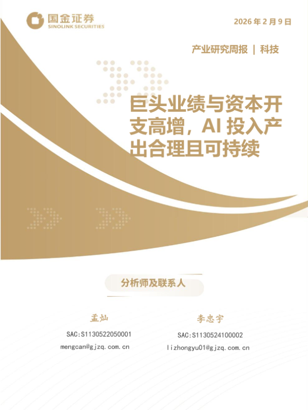 【产业研究中心】【202602】科技产业研究周报:巨头业绩与资本开支高增,AI投入产出合理且可持续-14页 证券期货研究报告
