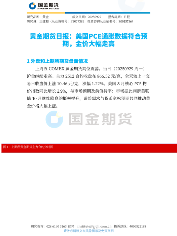 【国金期货】【202509】黄金期货日报 美国PCE通胀数据符合预期,金价大幅走高-4页 证券期货研究报告