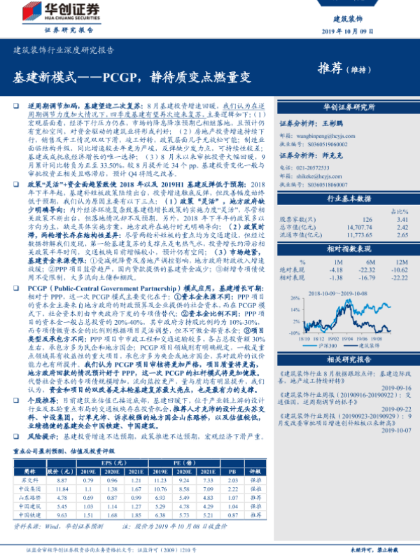 【华创证券】【20191009】建筑装饰行业深度研究报告:基建新模式——PCGP,静待质变点燃量变-23页 行业研究