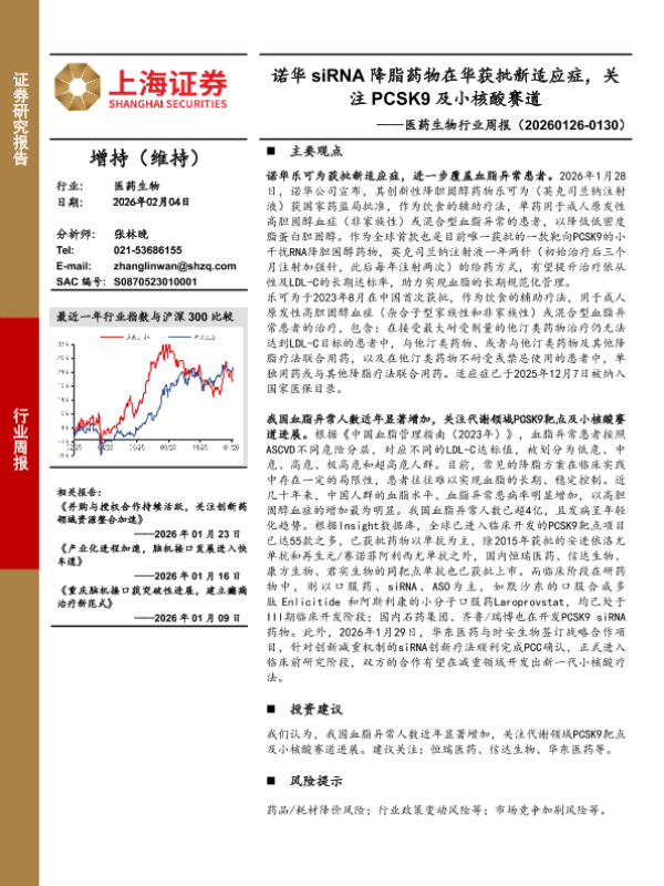 【上海证券】【202602】诺华siRNA降脂药物在华获批新适应症,关注PCSK9及小核酸赛道-2页 证券期货研究报告