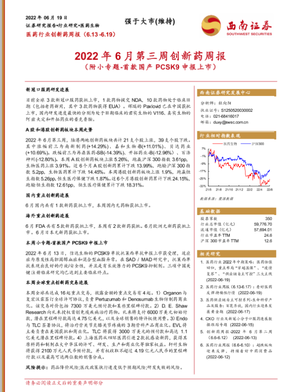 【西南证券】【20220619】2022年6月第三周创新药周报-26页 行业研究