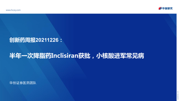 【华创证券】【20211226】创新药周报:半年一次降脂药Inclisiran获批,小核酸进军常见病-26页 行业研究