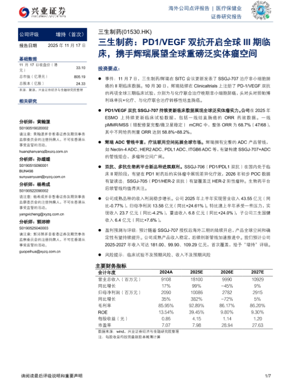 【兴业证券】【202511】三生制药_PD1_VEGF双抗开启全球III期临床_携手辉瑞展望全球重磅泛实体瘤空间-7页 证券期货研究报告
