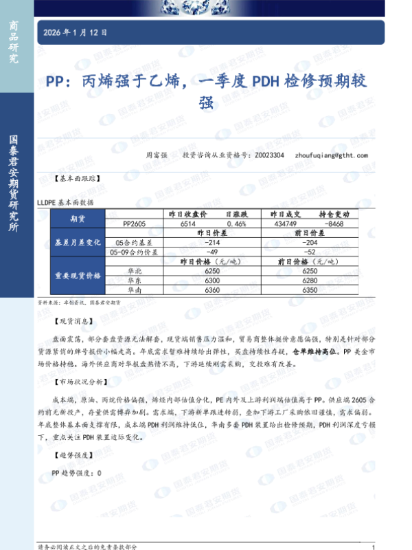 【国泰君安期货】【202601】PP:丙烯强于乙烯,一季度 PDH检修预期较强-2页 证券期货研究报告