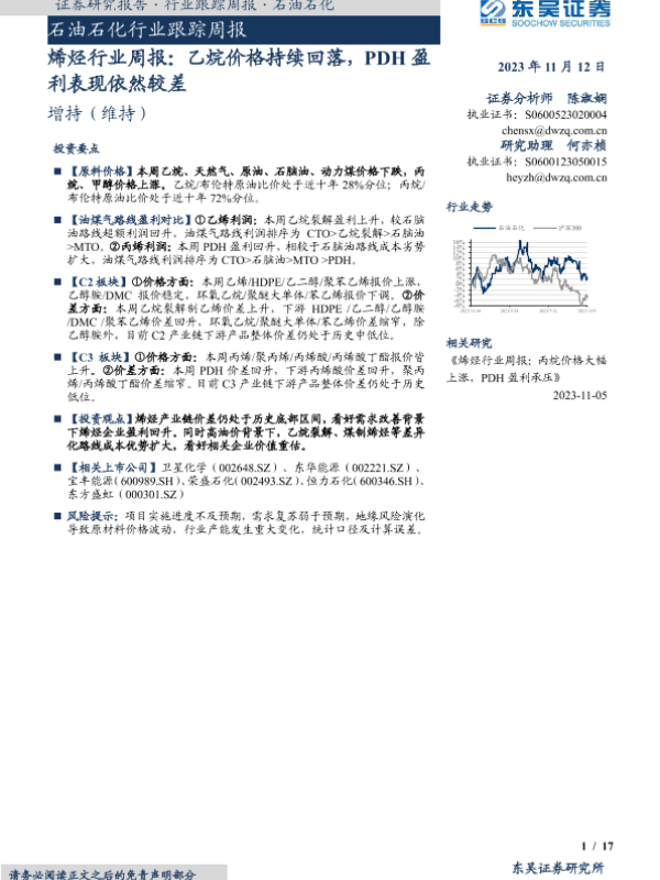 【东吴证券】【20231112】20231112-东吴证券-烯烃行业周报:乙烷价格持续回落,PDH盈利表现依然较差-17页 行业研究