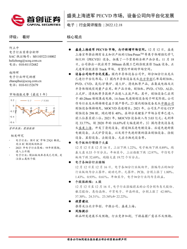 【首创证券】【20221218】20221218-首创证券-电子行业简评报告:盛美上海进军PECVD市场,设备公司向平台化发展-11页 行业研究