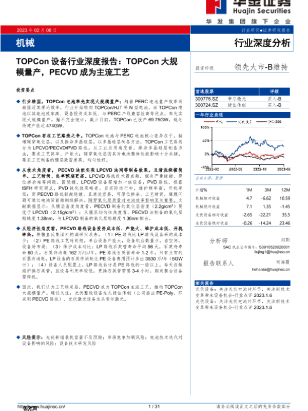 【华金证券】【20230208】TOPCon设备行业深度报告:TOPCon大规模量产,PECVD成为主流工艺-31页 行业研究