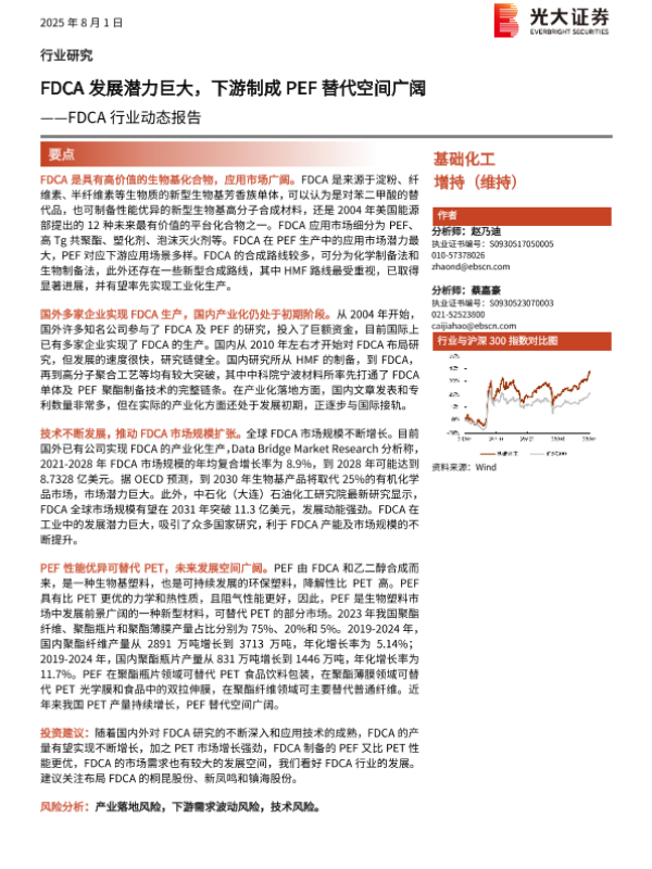 【光大证券】【20250801】FDCA行业动态报告:FDCA发展潜力巨大,下游制成PEF替代空间广阔-20页 证券期货研究报告