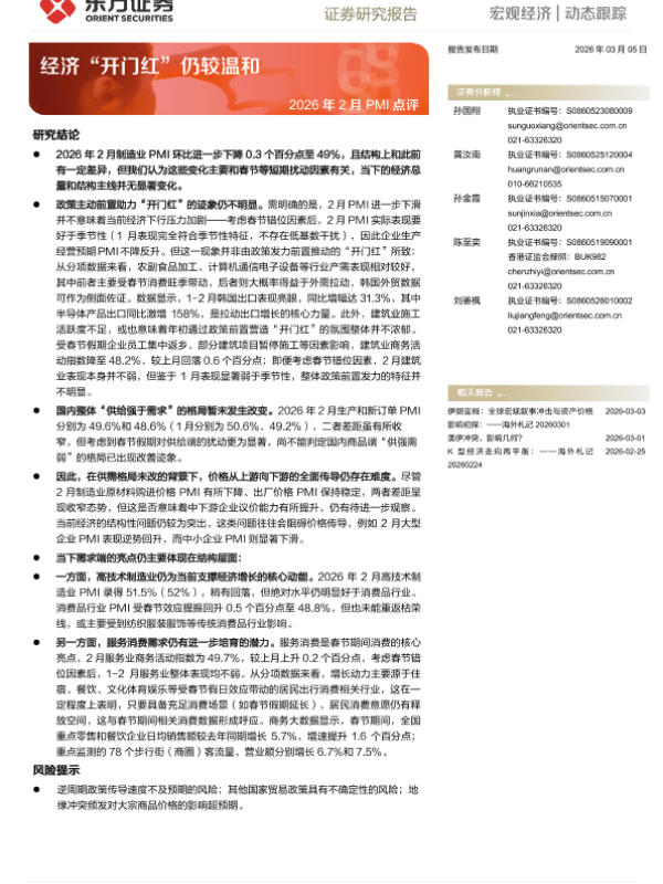 【东方证券】【202603】经济“开门红”仍较温和-4页 证券期货研究报告
