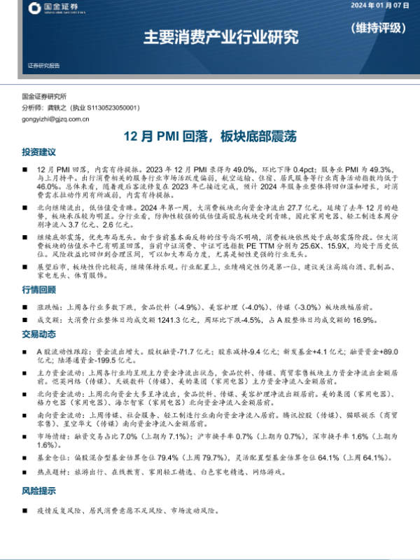 【国金证券】【20240107】12月PMI回落,板块底部震荡-19页 行业研究