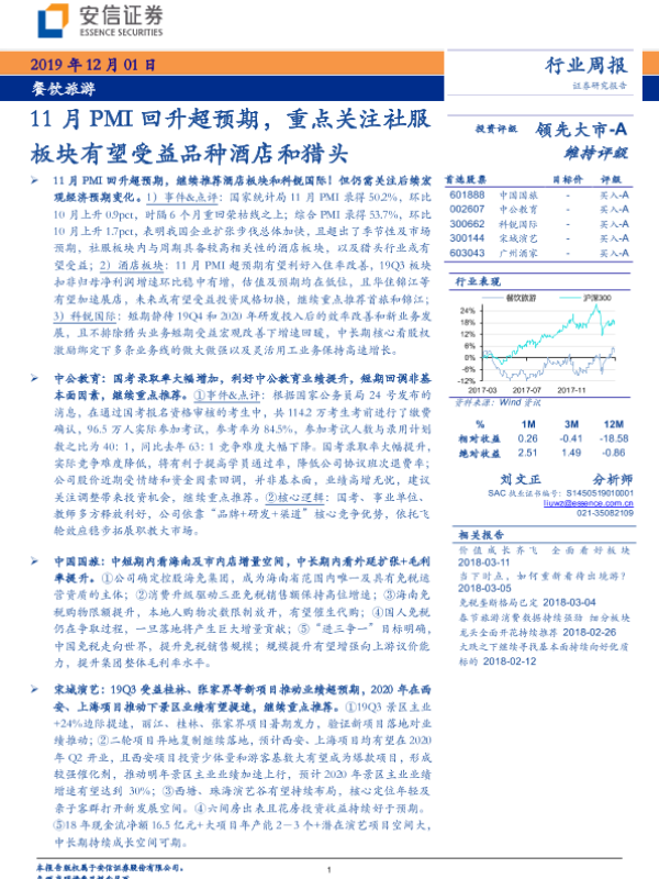 【安信证券】【20191201】11月PMI回升超预期,重点关注社服板块有望受益品种酒店和猎头-20页 行业研究