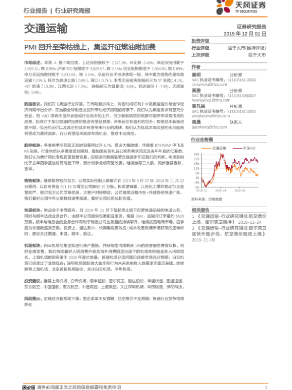 【天风证券】【20191201】交通运输行业研究周报:PMI回升至荣枯线上,集运开征燃油附加费-15页 行业研究